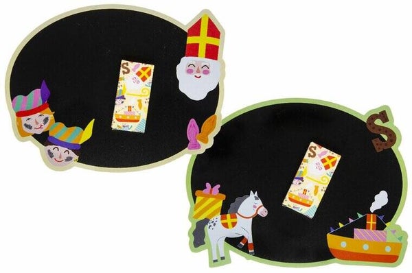 Sinterklaas krijtbord, compleet met krijtjes. Hiermee kan je de Sint, Pieten en Ozosnel welkom heten door je eigen boodschap er op te zetten. Je kan natuurlijk regelmatig iets anders schrijven en het bord na de Sinterklaastijd bewaren voor het volgende jaar.